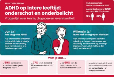 Een landelijke peiling naar ADHD bij ouderen, uitgevoerd door PersonaCura, topklinisch Centrum voor Persoonlijkheids- en Ontwikkelingsstoornissen bij Senioren (GGZ Breburg) in samenwerking met Medice, schetst een beeld van onbegrepen klachten, late herkenning en een duidelijke behoefte aan meer kennis en passende zorg.