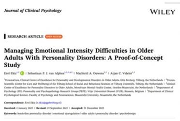 Vanuit PersonaCura, GGz Breburg en Tranzo, Tilburg University, verscheen in de Journal of Clinical Psychology het artikel 'Managing Emotional Intensity Difficulties in Older Adults With Personality Disorders: A Proof-of-Concept Study' over onderzoek naar VERS Senioren. VERS Senioren is een voor ouderen aangepaste behandeling voor emotieregulatie problematiek bij ouderen met persoonlijkheidsstoornissen.